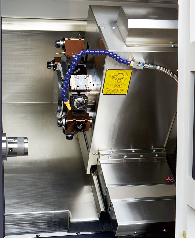 또한 장비에는 다음과 같은 실용적인 하이라이트도 있습니다. 0° 파워 헤드는 8000RPM의 안정적인 작동을 달성할 수 있으며, 90° 파워 헤드 정격 작동 속도는 6500RPM입니다. 공구 홀더는 기어리스 모듈 전송 설계를 채택하여 뿌리부터 열원의 영향을 제거하여 가공 정확도를 효과적으로 보장할 수 있습니다. 밀링 및 선삭 기능이 통합되어 스테인레스강, 티타늄 합금, 탄소강과 같은 복잡한 재료의 가공 요구 사항을 쉽게 충족할 수 있습니다. 칩 제거 시스템은 측면 + 후면 통합 설계, 유연한 설치 모드를 채택하고 실제 작업 조건에 따라 임의로 선택할 수 있습니다.