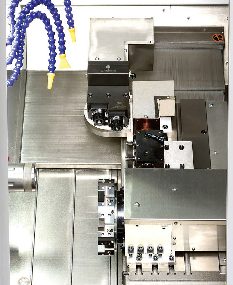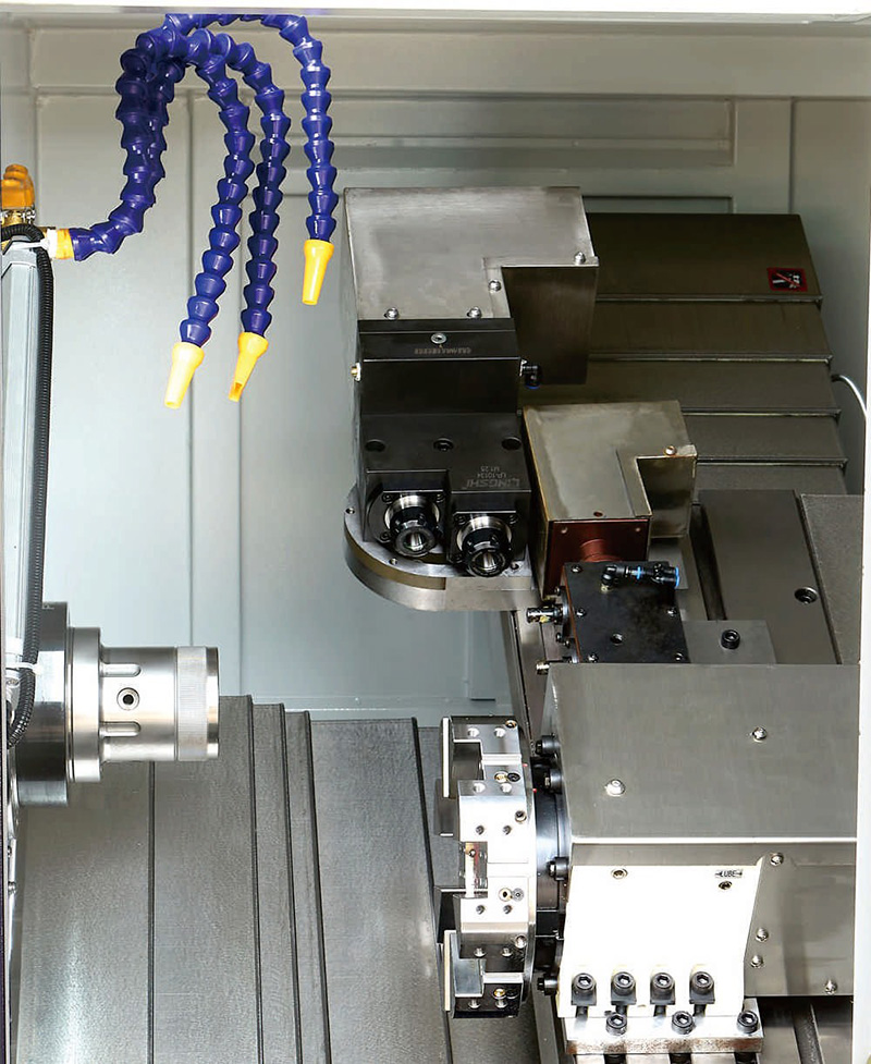 작은 못과 기름 홈. 파워 헤드와 툴 터렛을 장착할 수 있습니다.